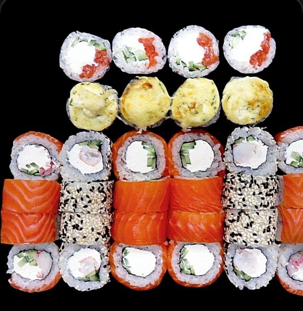 Ролл Филадельфия классический , ролл Филадельфия запечённый, Филадельфия с крабом, ролл Филадельфия эби в кунжуте. Наслаждение для гурманов (32 шт.)
