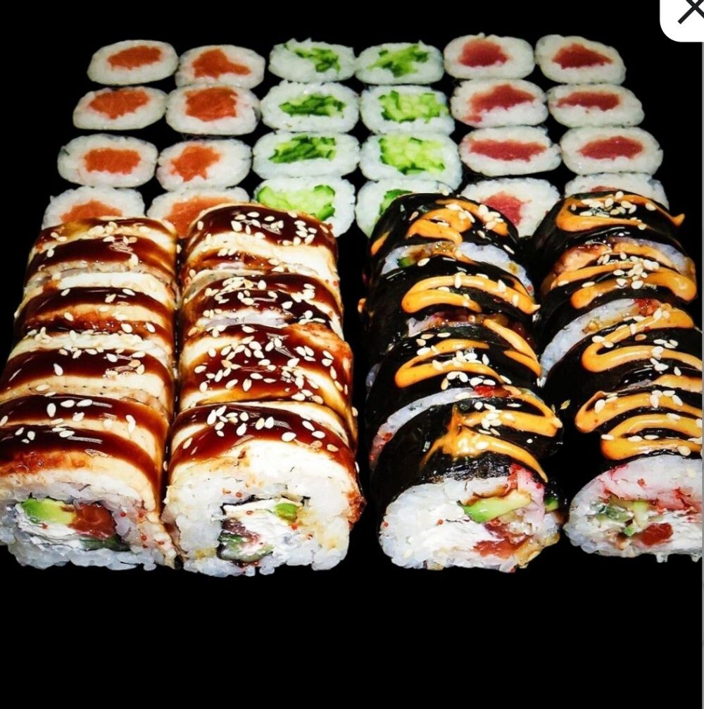 Состав:ролл Балтимор,ролл Дракон,ролл сяки маки,ролл текка маки,ролл капа маки.