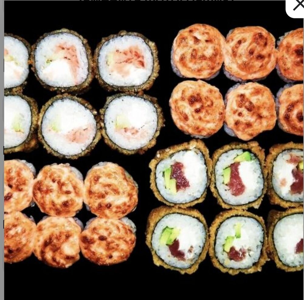 Состав:жаренный ролл Филадельфия, жаренный ролл с тунцом, запеченный ролл с креветками, запеченный ролл с тунцом.
